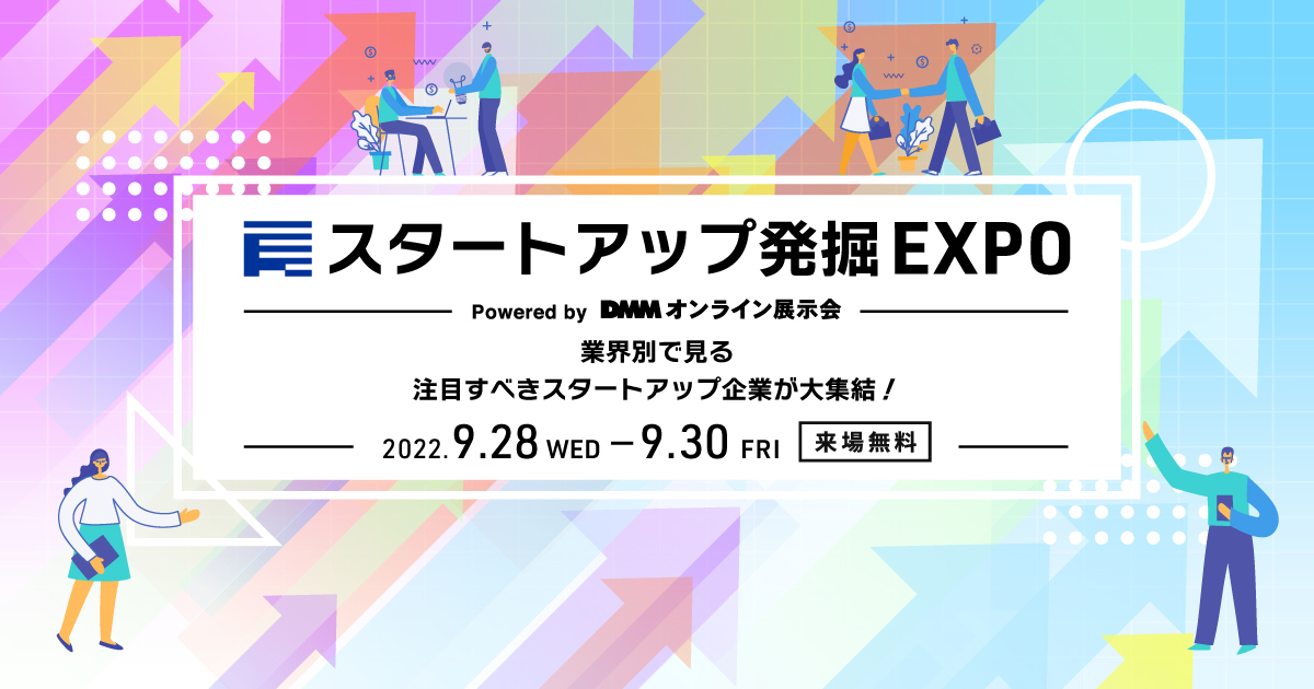 ALGO ARTISは、9月28日(水)~9月30日(金)の3日間、合同会社DMM.com主催のオンライン展示会「スタートアップ発掘 EXPO vol.2」にブース出展します。